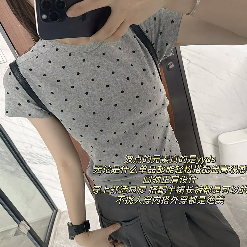 美式波点正肩短袖t恤女夏季新款高级感内搭修身显瘦短款上衣