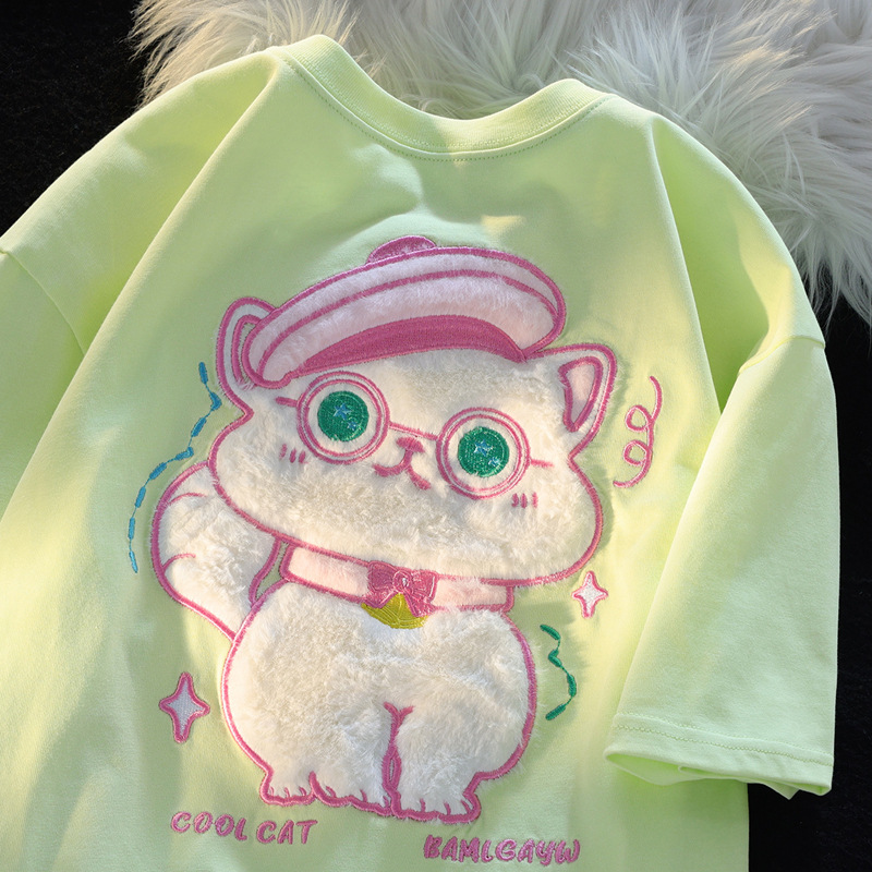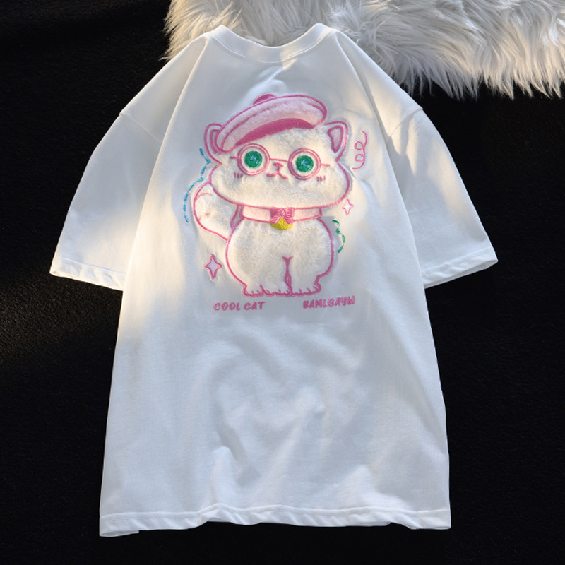 纯棉短袖刺绣毛绒可爱ins夏季新款韩版学生宽松圆领上衣体恤女