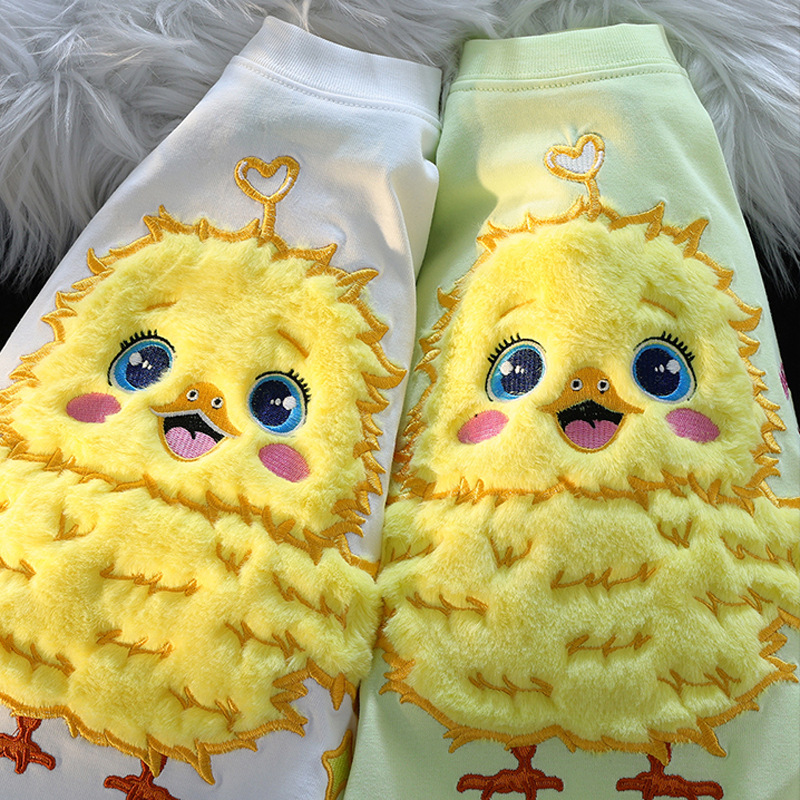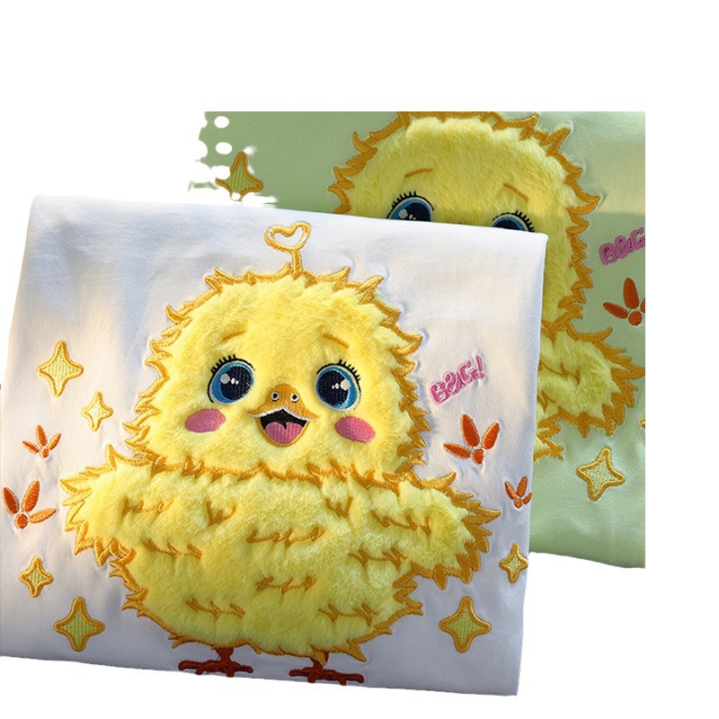 夏季新款植绒小黄鸭刺绣T恤女纯棉韩版情侣学生短袖宽松上衣ins