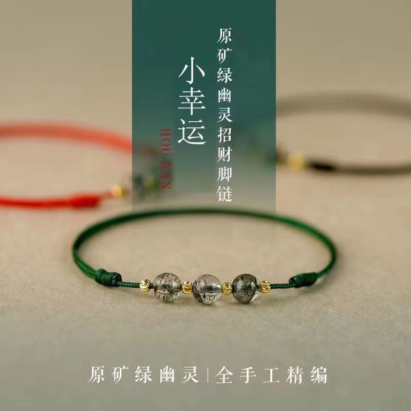绿幽灵水晶招财脚链女红绳链转运珠祈福简约细手工编森系闺蜜礼物