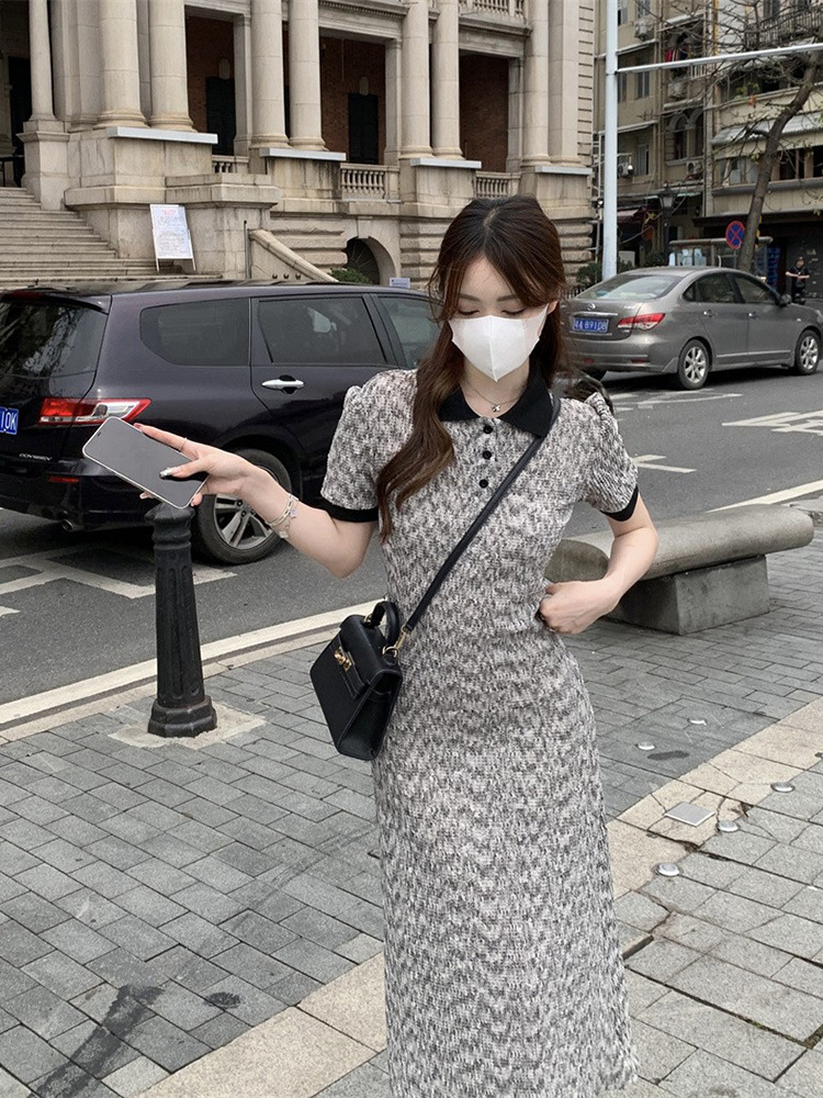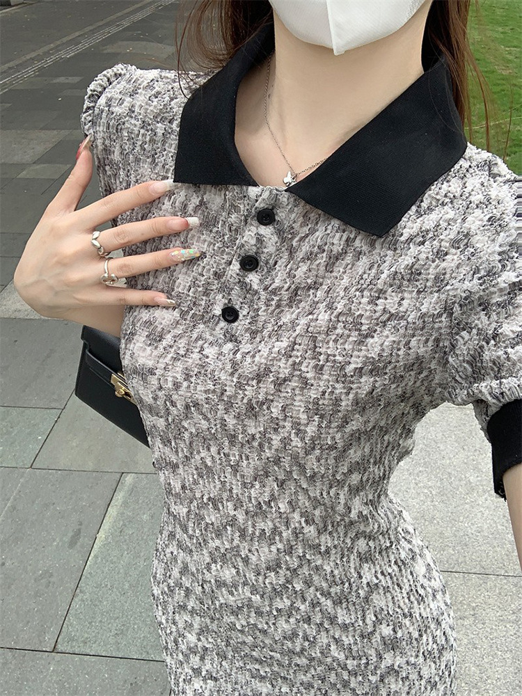 POLO领泡泡袖连衣裙女夏季年新款法式高级感收腰包臀短裙裙子