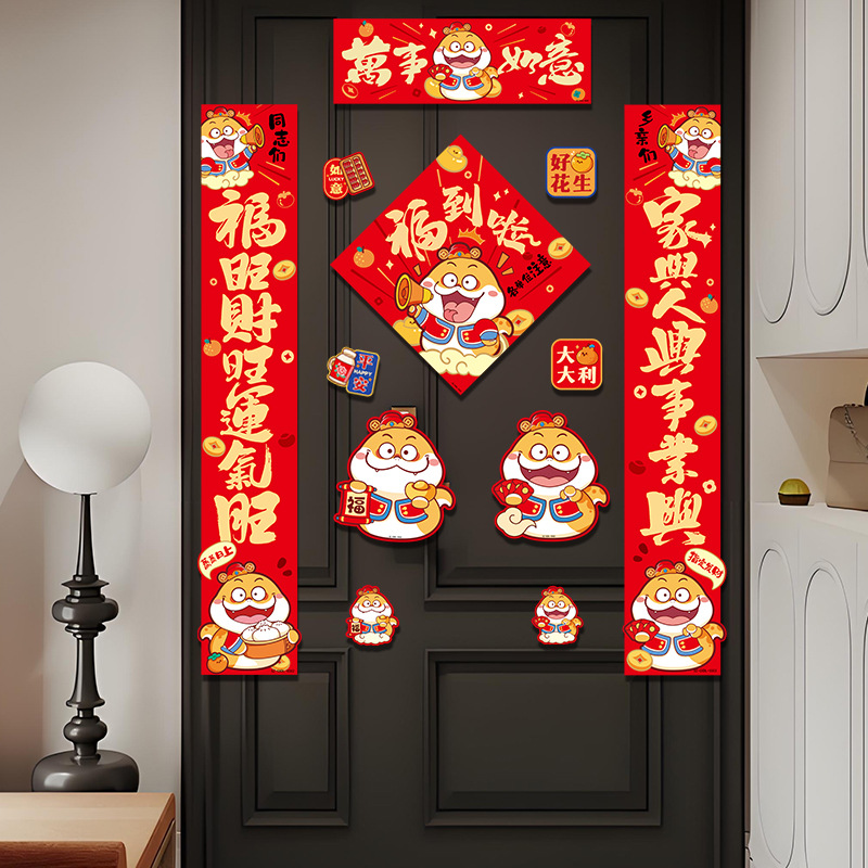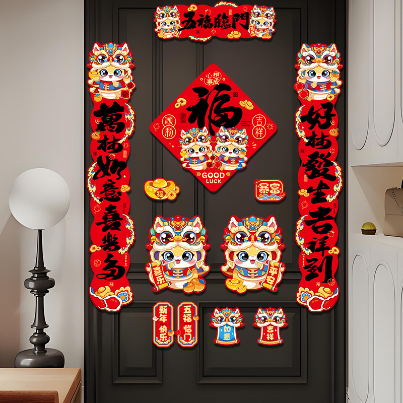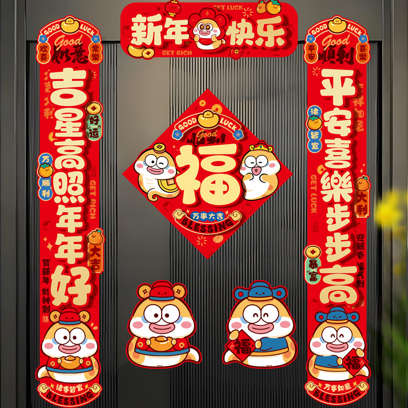 磁吸对联2025蛇年春联过年装饰门贴卡通新年家用福字门联春节