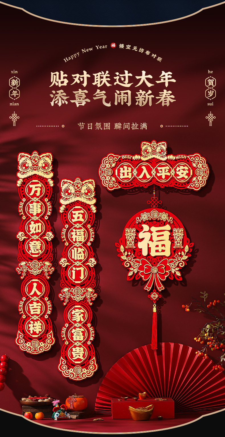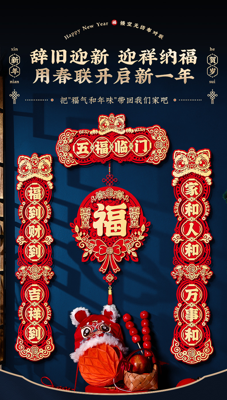 - 五福临门_4字单色对联+吉祥福挂