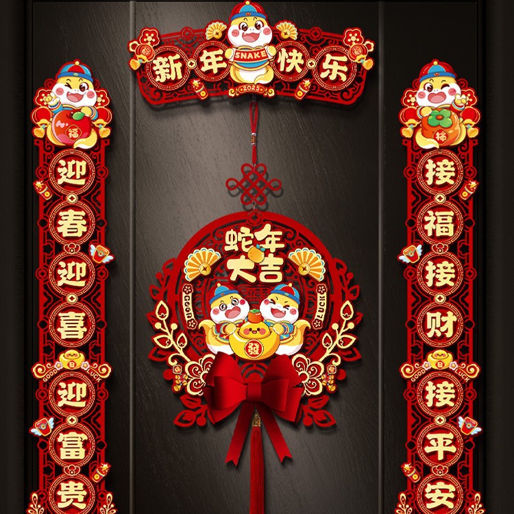 2025新款过年春节磁吸对联蛇年春联植绒家用装饰新春大门福字门贴