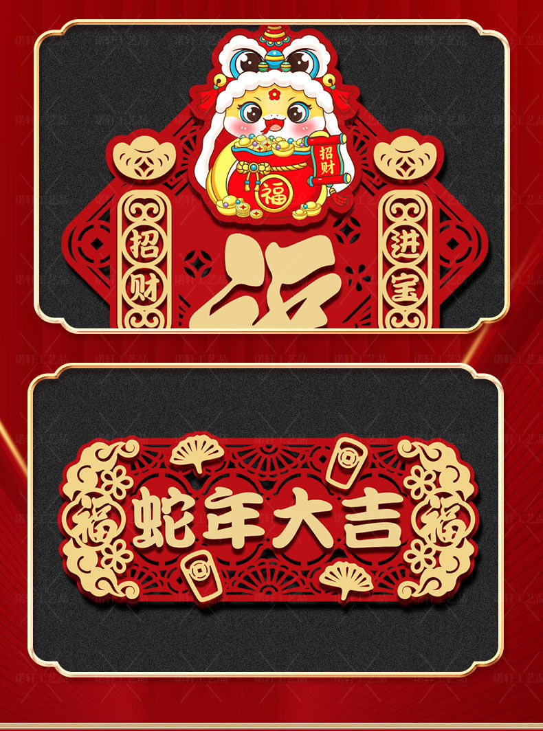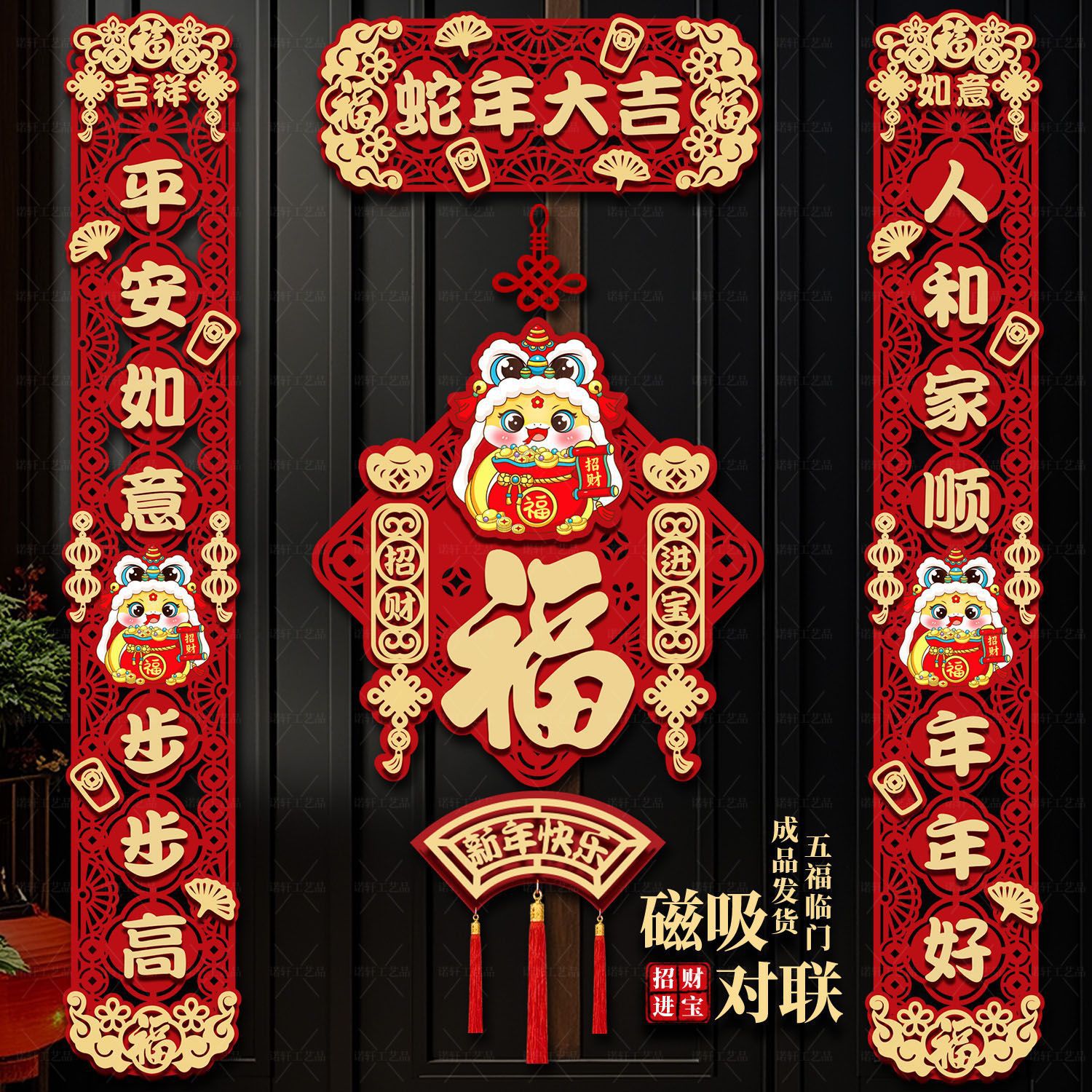- C贺新春-五福临门+蛇年大吉挂件【高档植绒】
