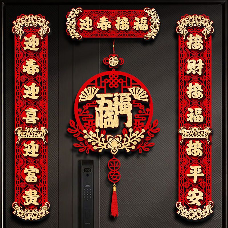 - 【磁吸胶贴双用】迎春接福对联+五福临门挂件