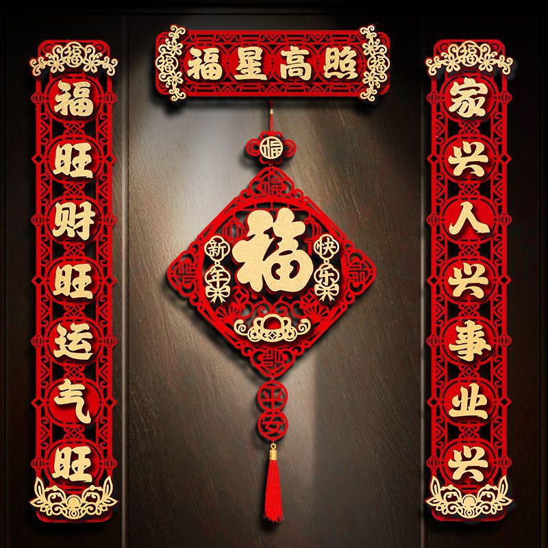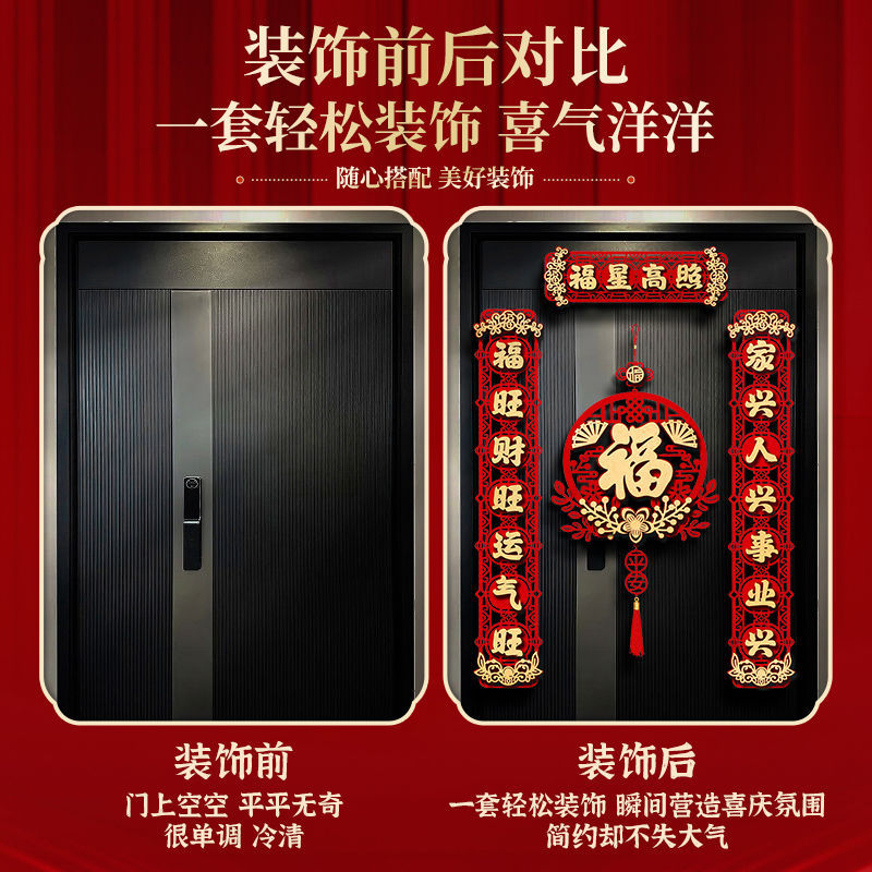 - 【磁吸+胶贴双用】福星高照对联+福字挂件