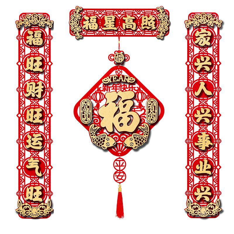 - 【磁吸胶贴双用】福星高照对联+新年快乐挂件