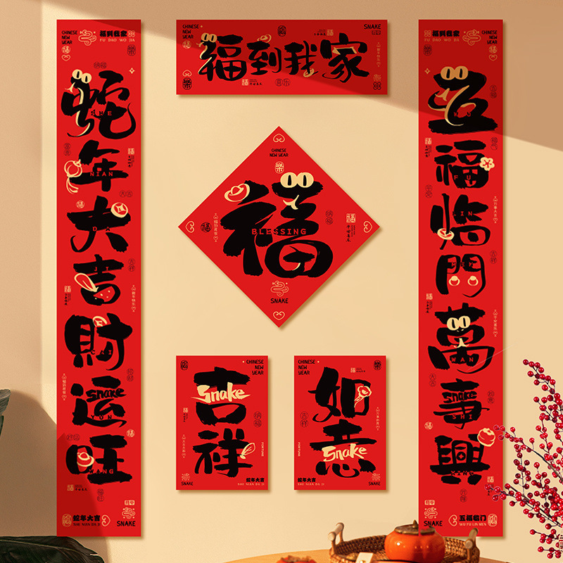 蛇年新款对联2025春联春节新年过年家用小挥春福字入户大门贴装饰