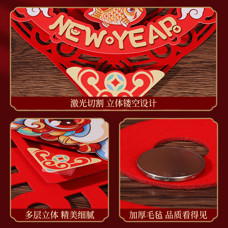 毛毡对联2025蛇年新款新春春联过年春节家用大门装饰立体福字门贴