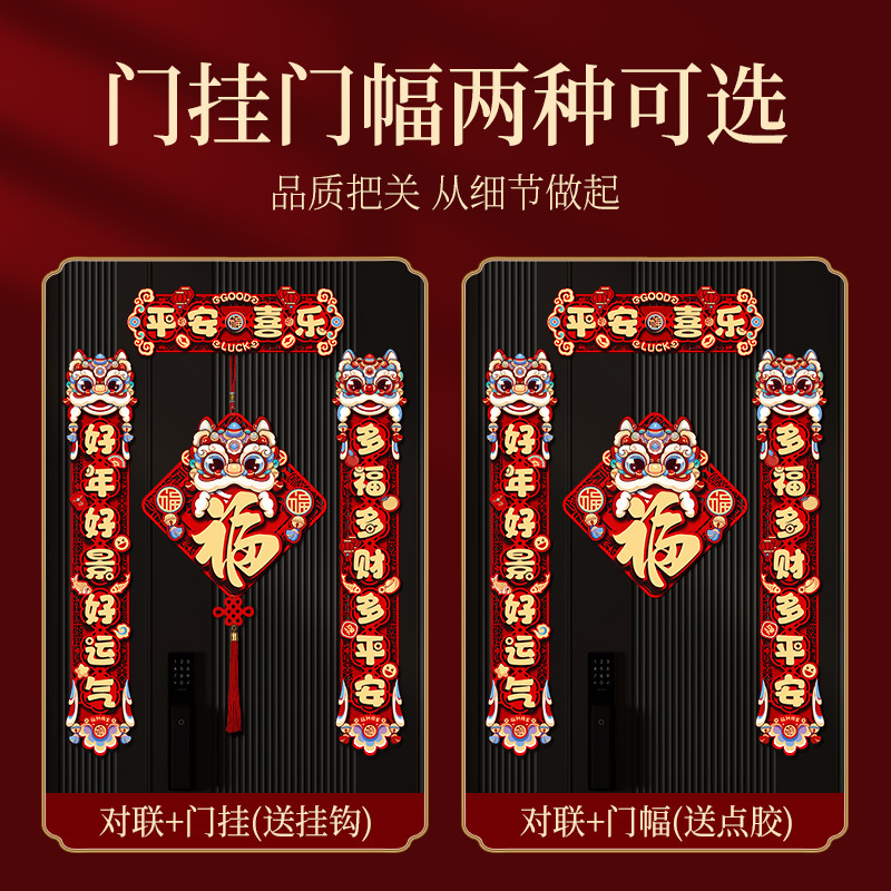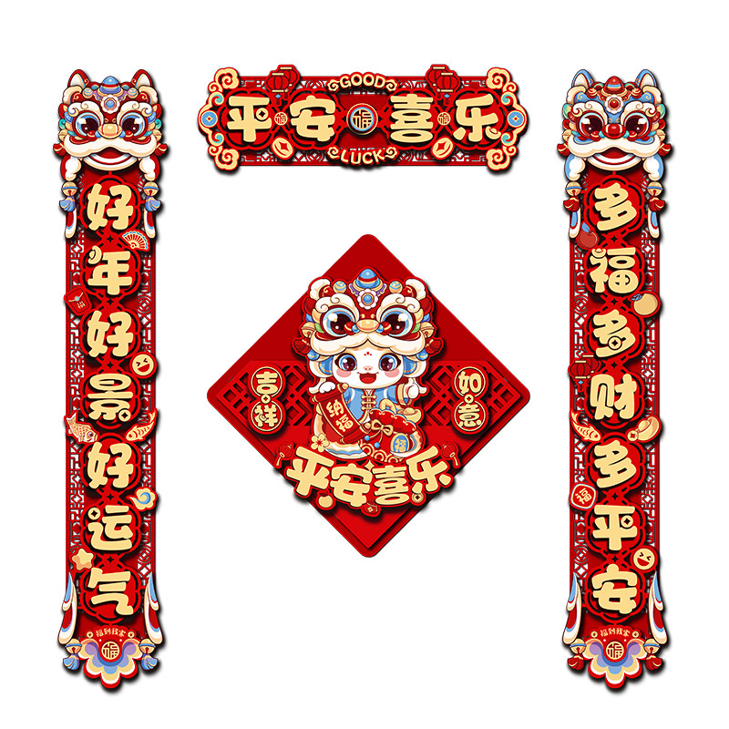 - 对联套餐【平安喜乐B7+门挂醒狮福05】