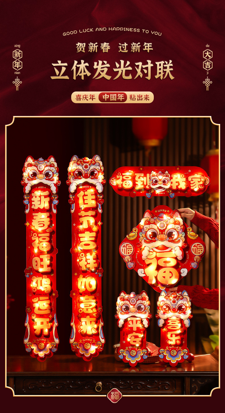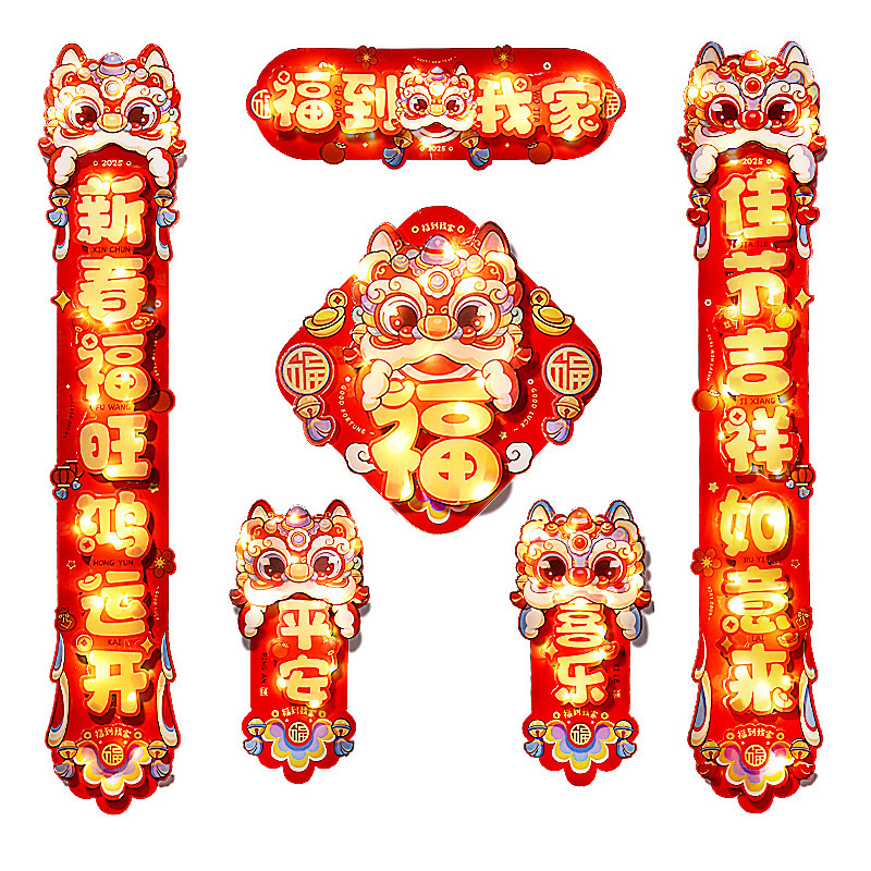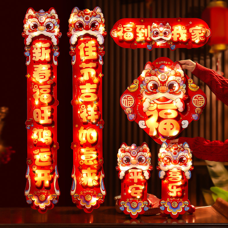 新年发光对联2025新款蛇年春联过年春节大门装饰家用福字门贴布置