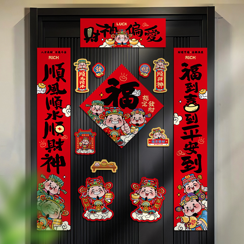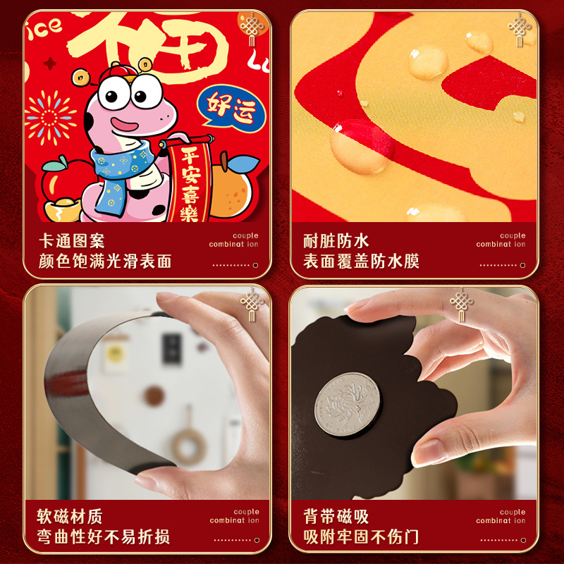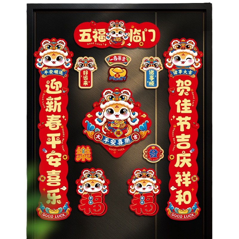 蛇年磁吸对联贴春联贴2025新年春节卡通福字春联过年入户门装饰