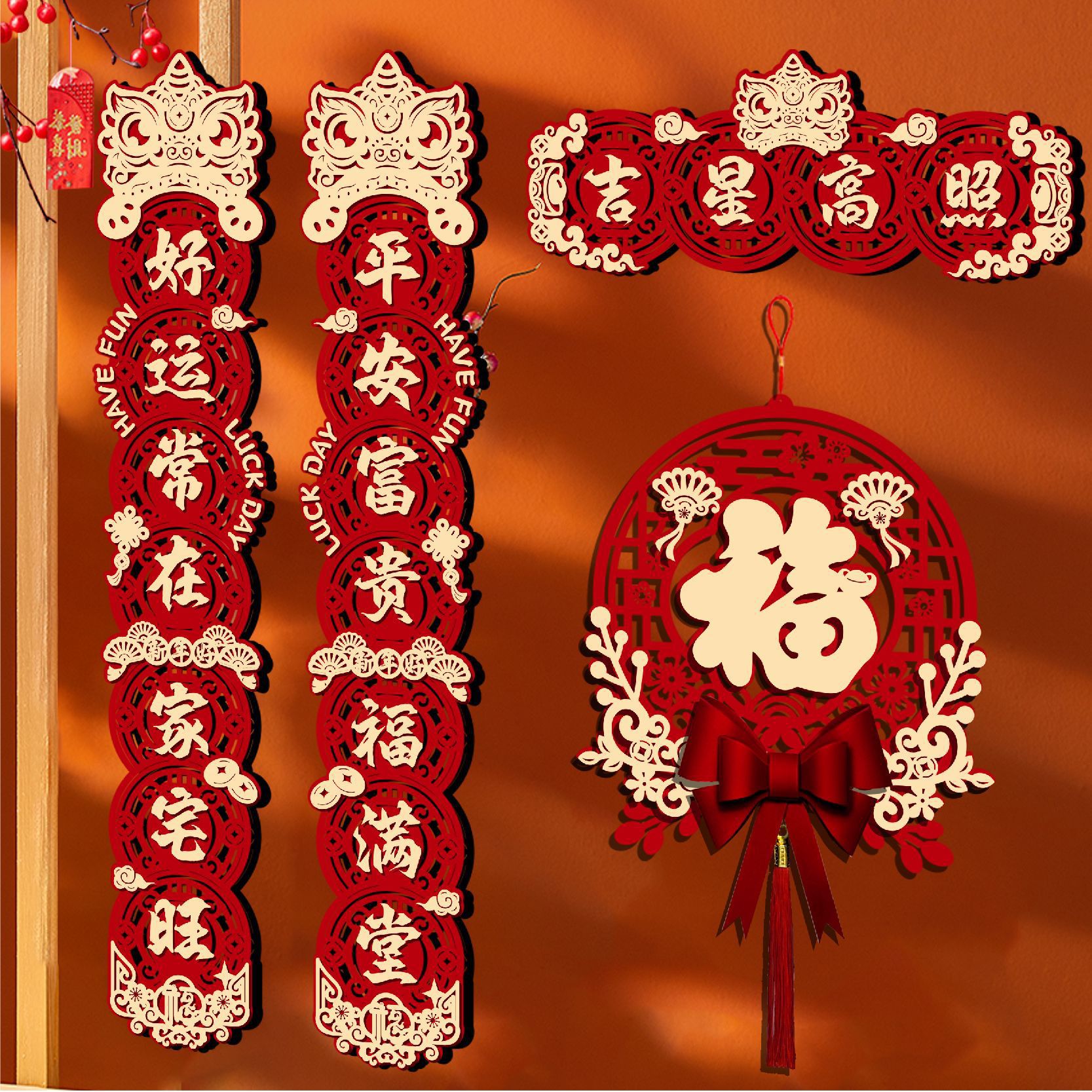 - 吉星高照对联+新年窗花【送黏贴片】