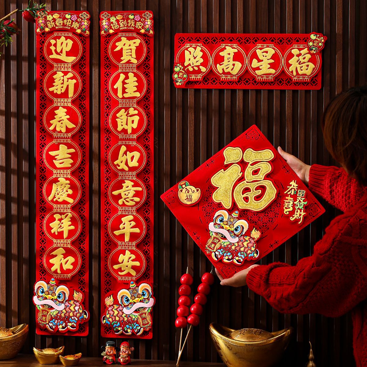 2025新款新年磁吸对联蛇年春联立体入户大门贴福字春节过年装饰品