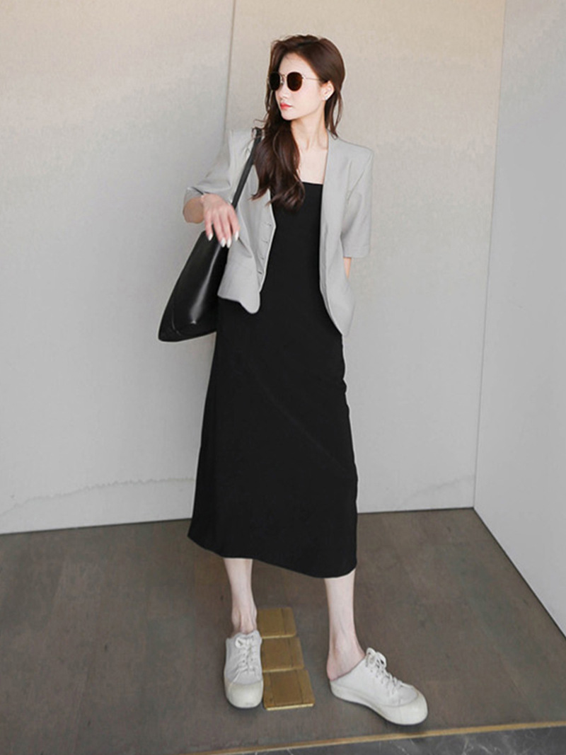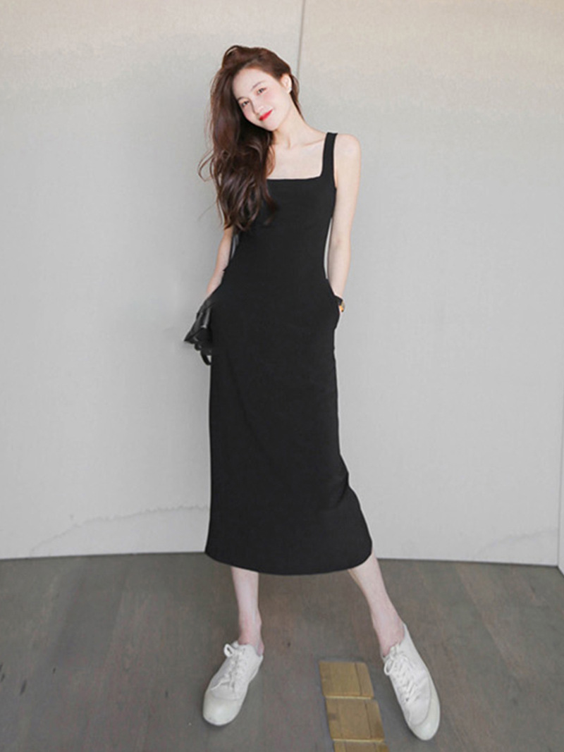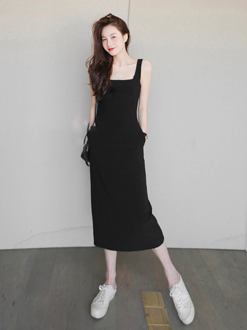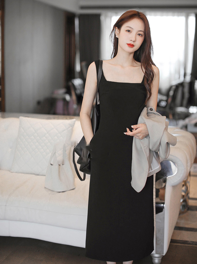 复古高级感方领赫本风连衣裙夏季新款法式气质收腰减龄背心小黑裙