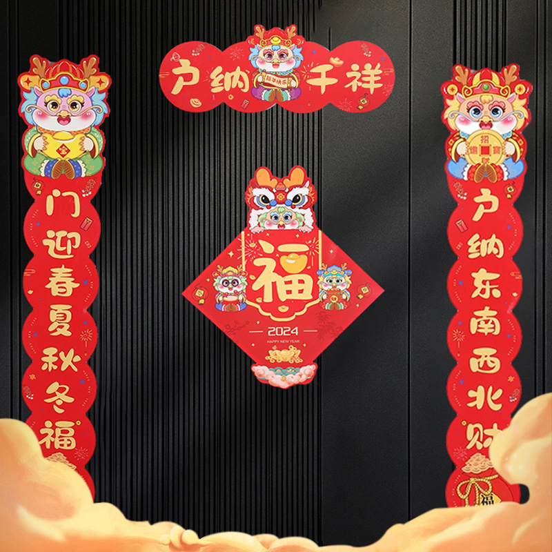 新年对联龙年春联新款春节磁吸入户门装饰过年福字家用门贴