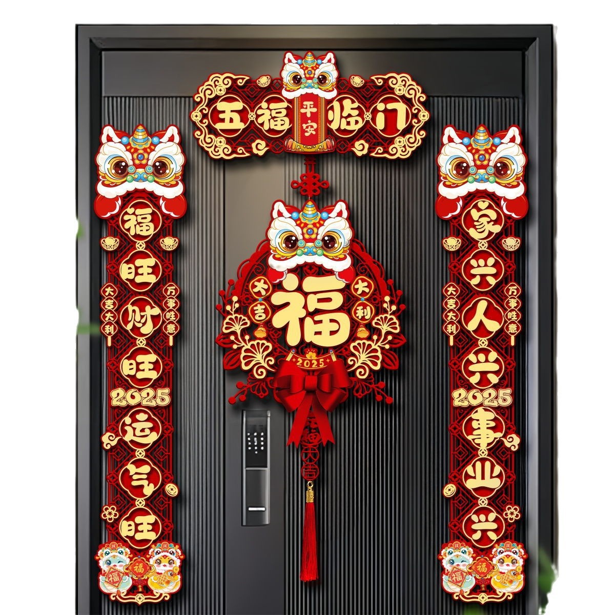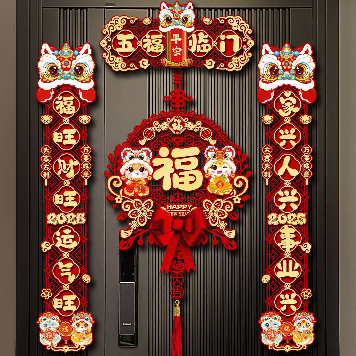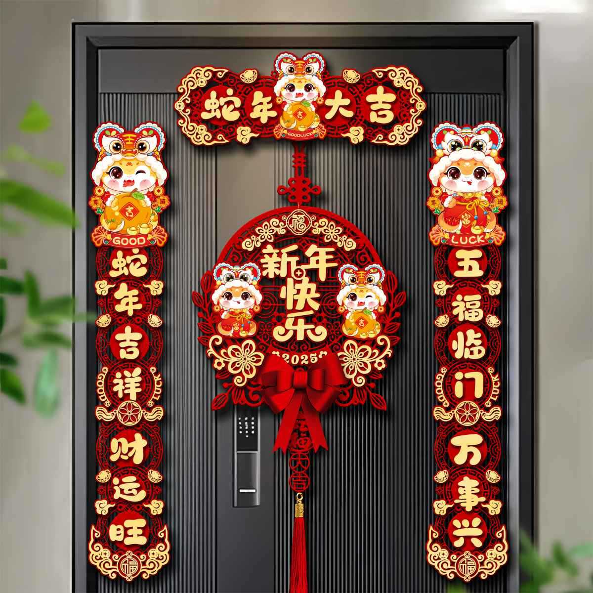2025新款过年春节磁吸对联蛇年春联植绒家用装饰新春大门福字门贴