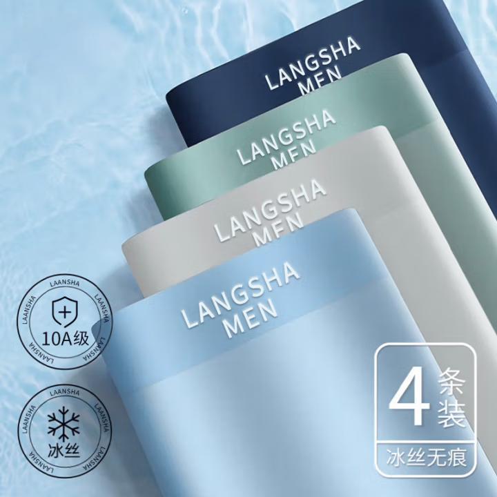 男士内裤男冰丝平角裤舒适透气抑菌裆冰爽无痕中腰四角短裤头4条
