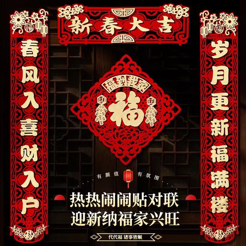 新年对联春节家用新款立体春联创意装饰大门过年福字门贴一整套