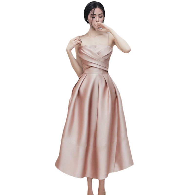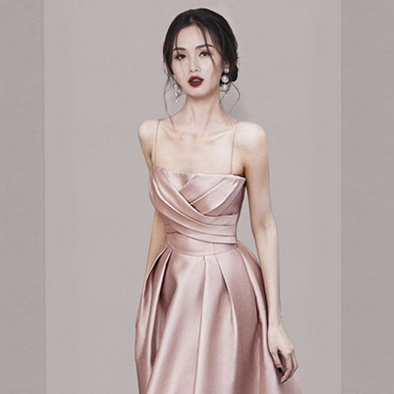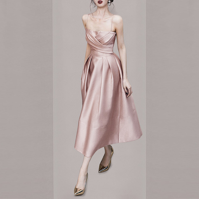 法式礼服长裙小众高端夏款新品女装设计高级感缎面吊带连衣裙
