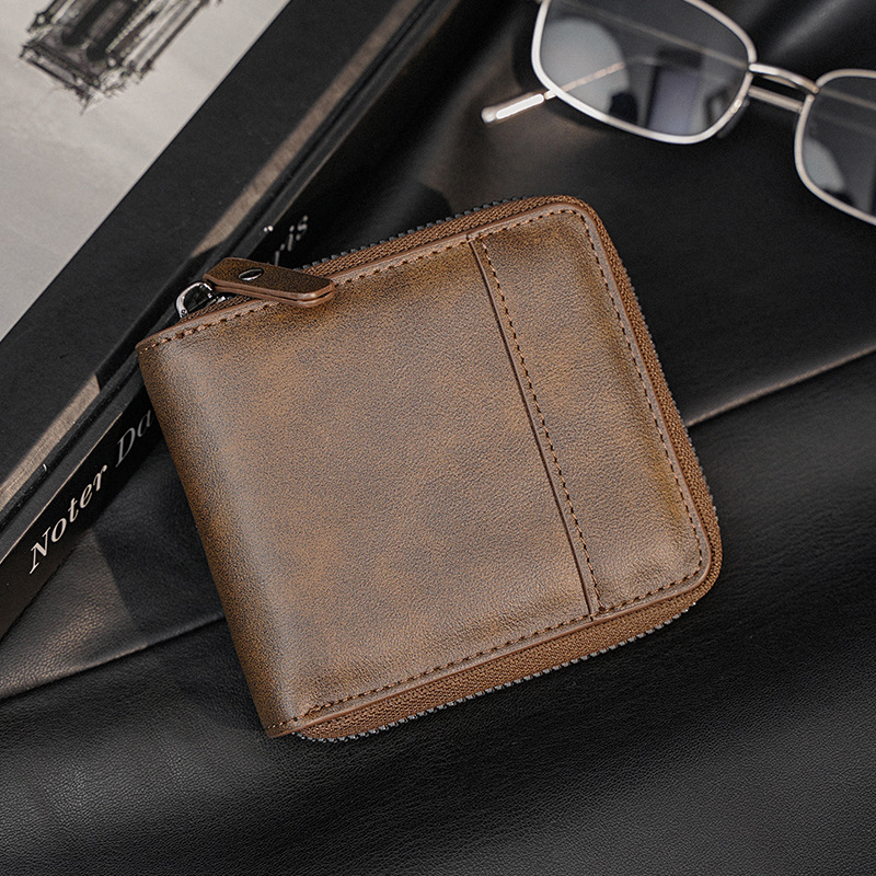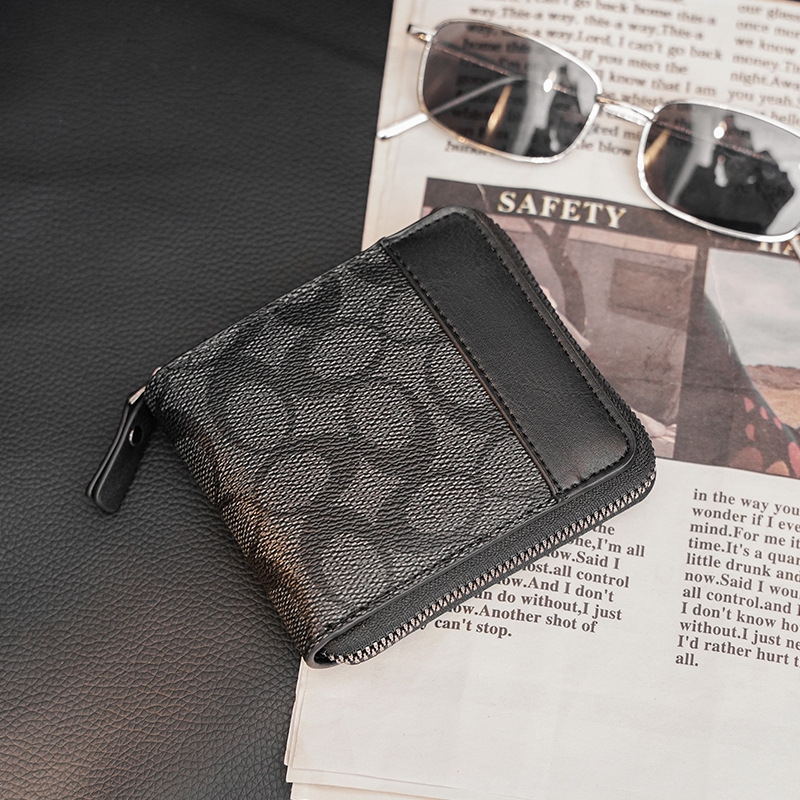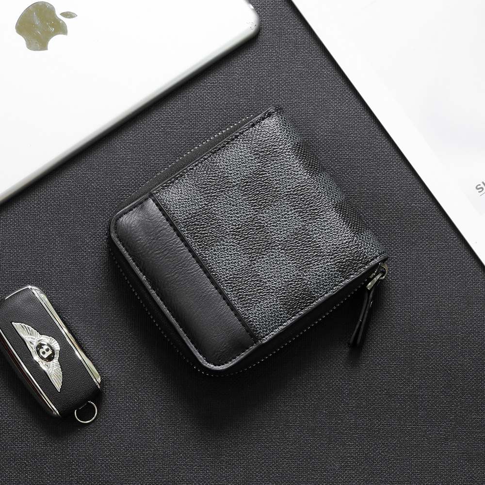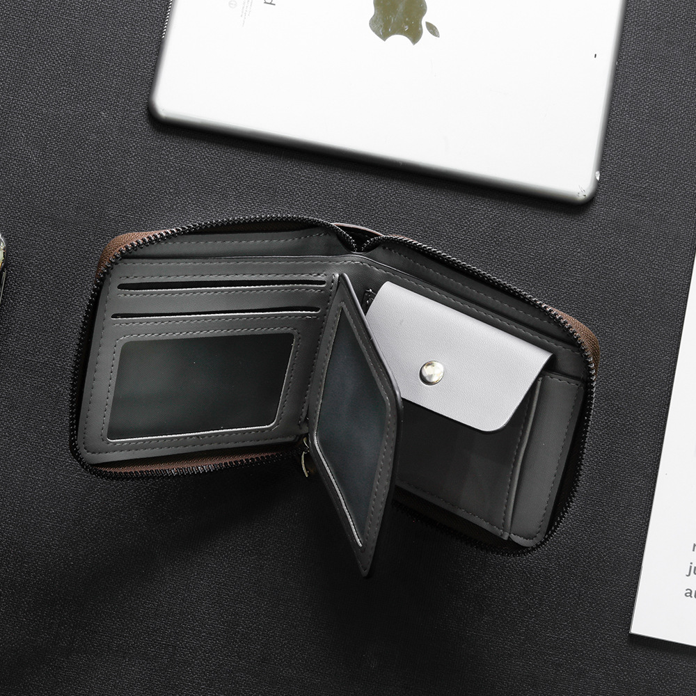 新款韩版钱包男短款横款复古 皮夹多功能格子小钱夹