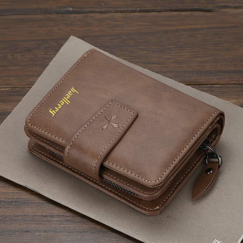 新款 钱包男士短款多卡位竖款拉链搭扣零钱包多功能卡包
