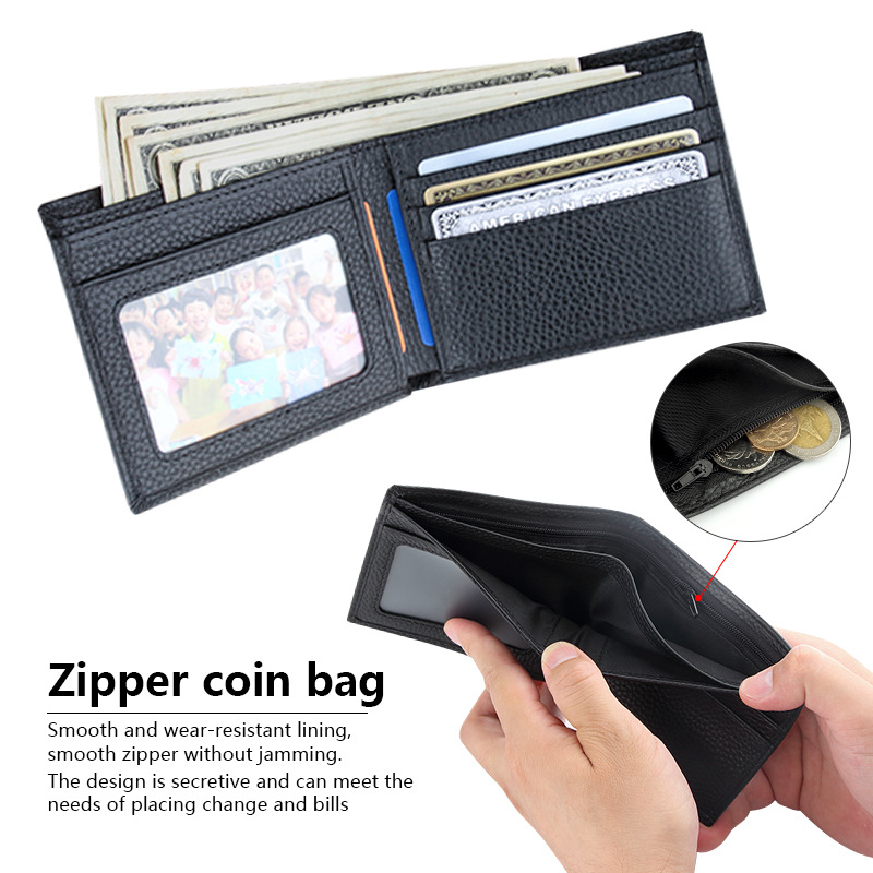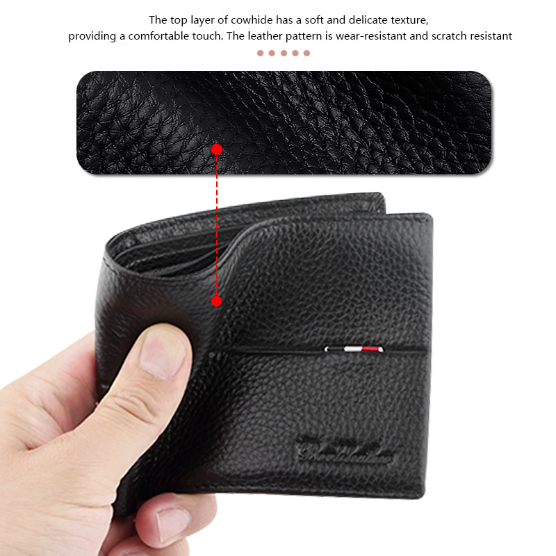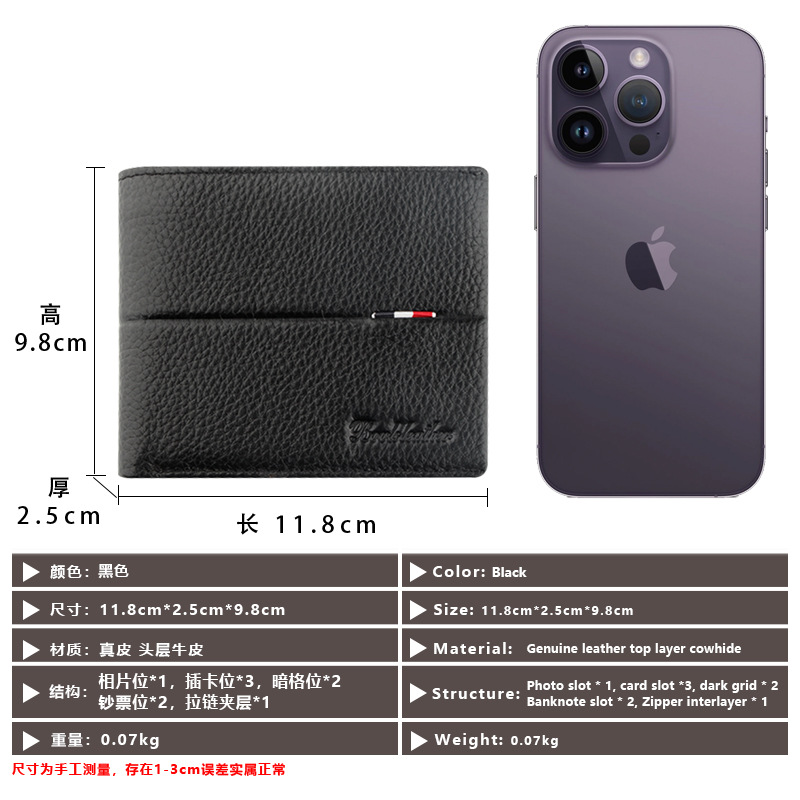 新款男士钱包头层牛皮钱夹 银行信用卡包 休闲短款男钱包带拉链袋