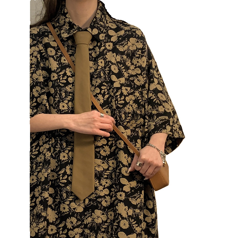 棕色领带女绿色复古港风古着vintage休闲衬衫百搭ins手打小众痞帅