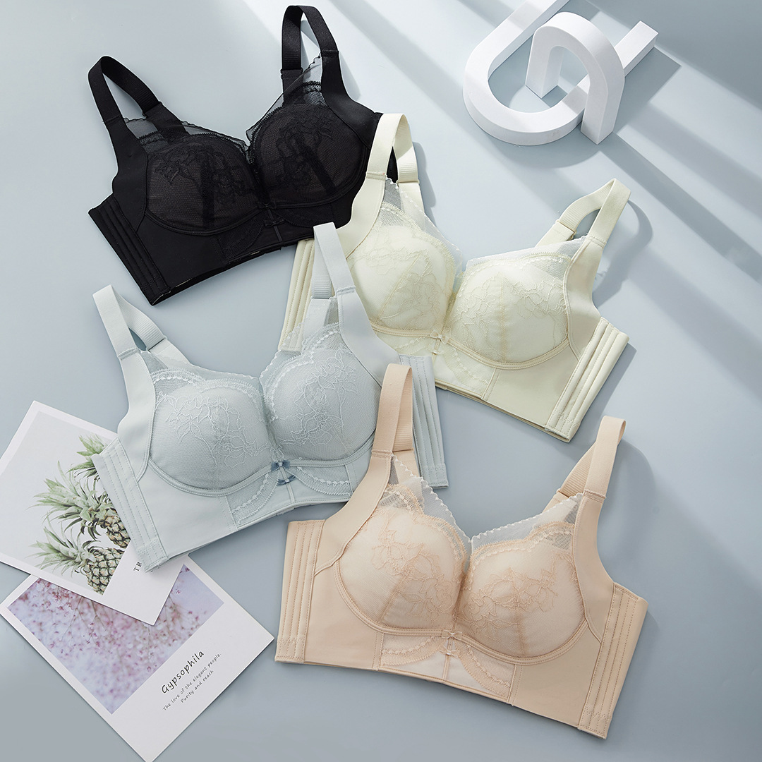 内衣女小胸显大聚拢蕾丝文胸调整型上托透气无钢圈按摩杯收副乳罩