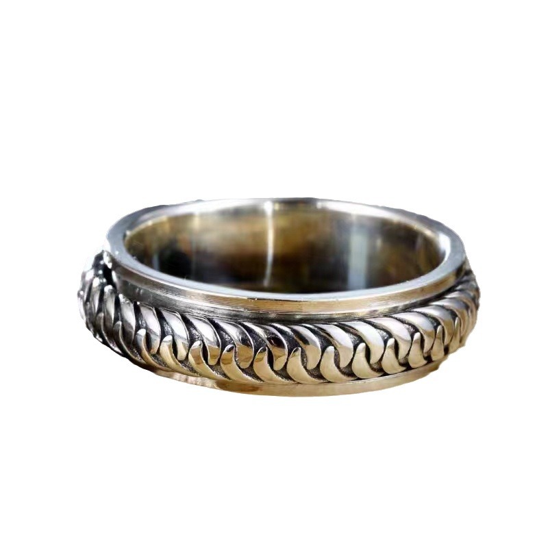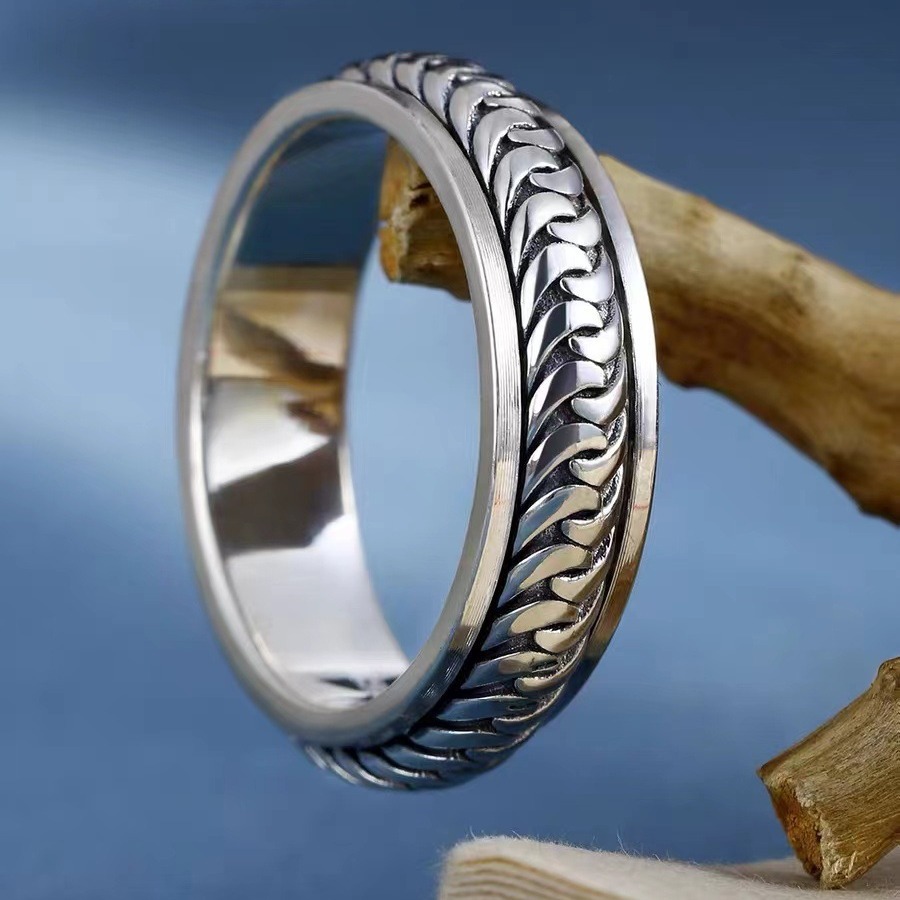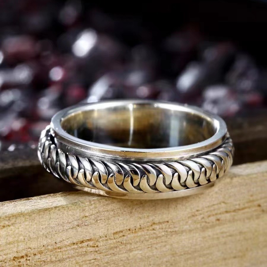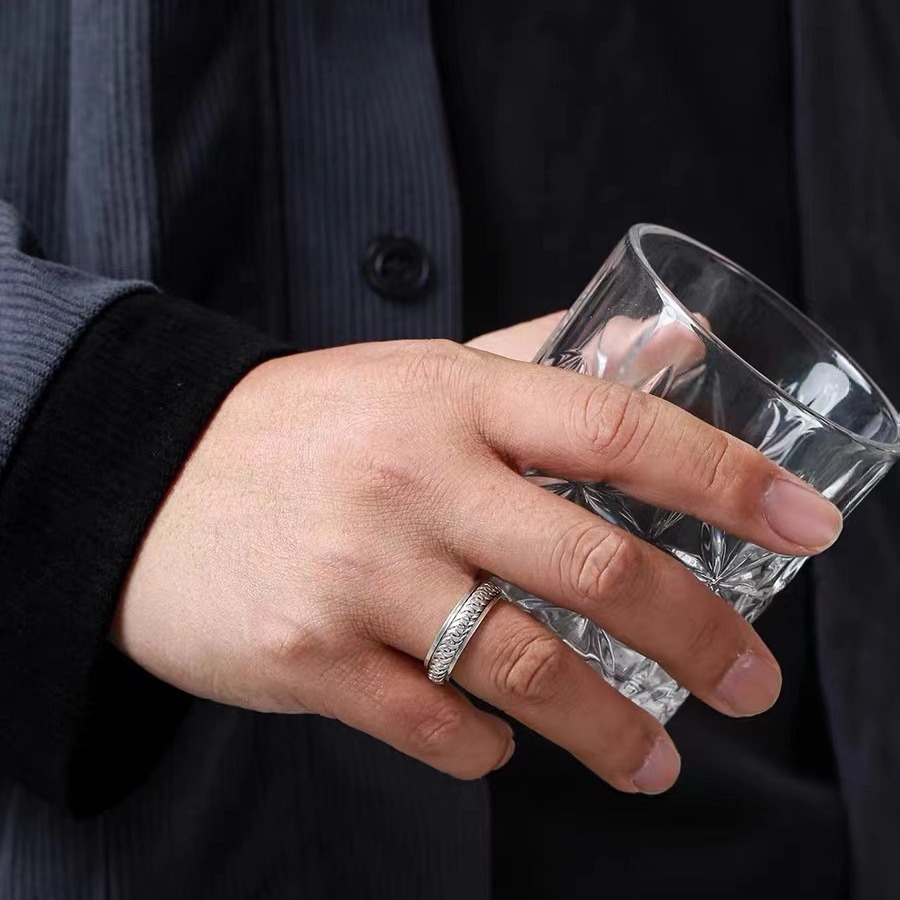 新款古巴链痞帅戒指男款潮牌高级感嘻哈素圈食指戒指
