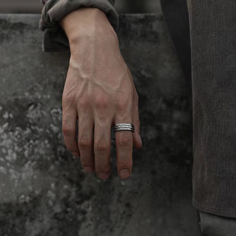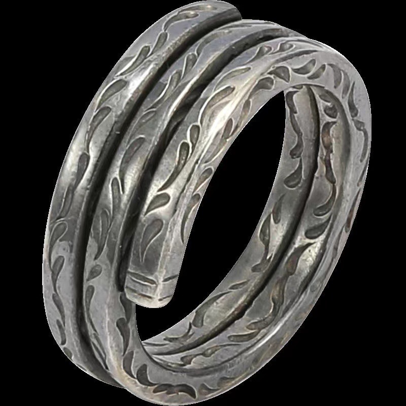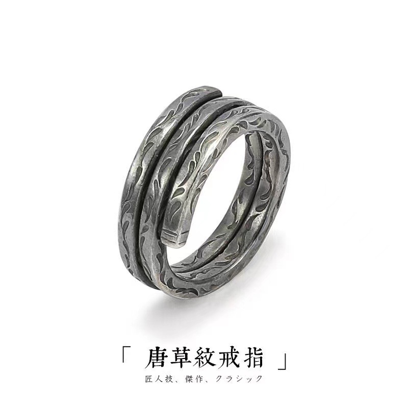 唐草纹戒指小众设计感开口可调节宽面小拇指复古风格戒指高级