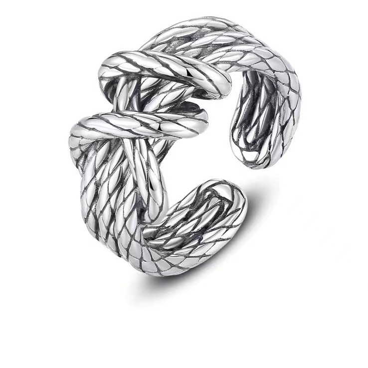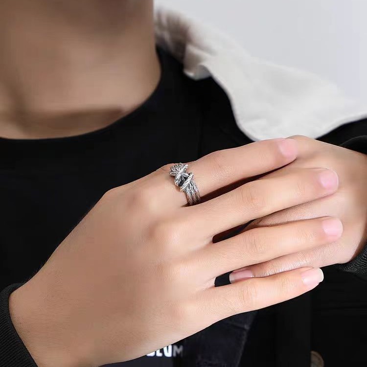 新品麻花绳索戒指男潮牌高级感复古开口戒指轻奢小众嘻哈痞帅饰品