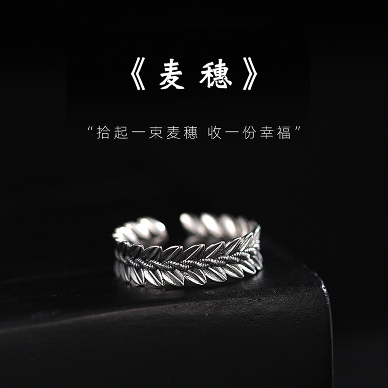 新款民族风麦穗戒指男女款复古高级感指环开口可调节个性设计