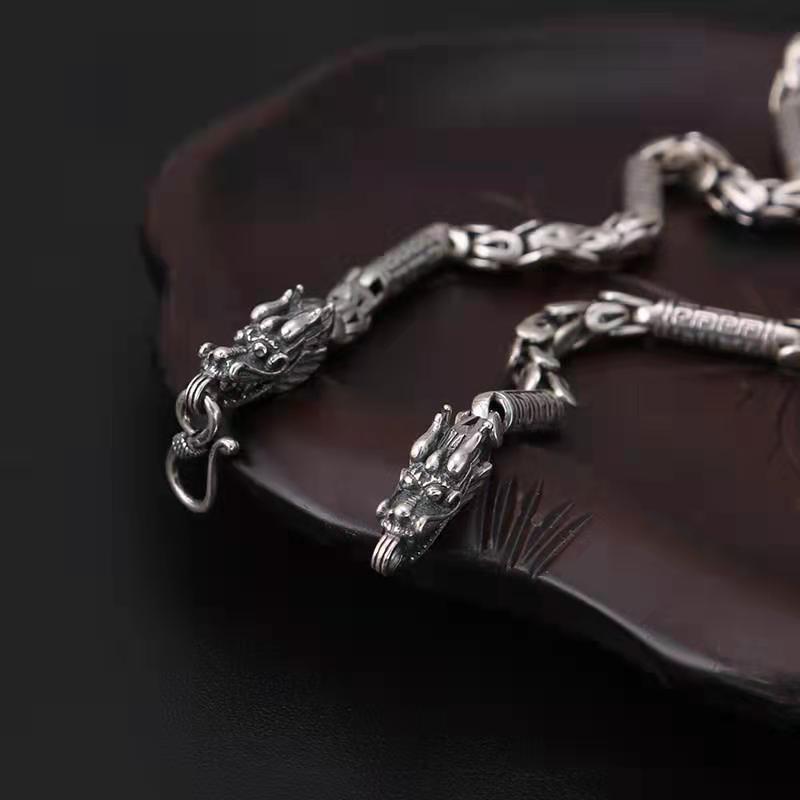 霸气龙头项链男龙鳞万字纹桶珠复古时尚6mm粗潮流饰品