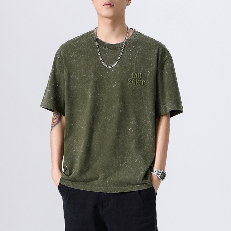 夏季新款重磅纯棉刺绣字母短袖t恤男美式复古宽松大码扎染T恤上衣