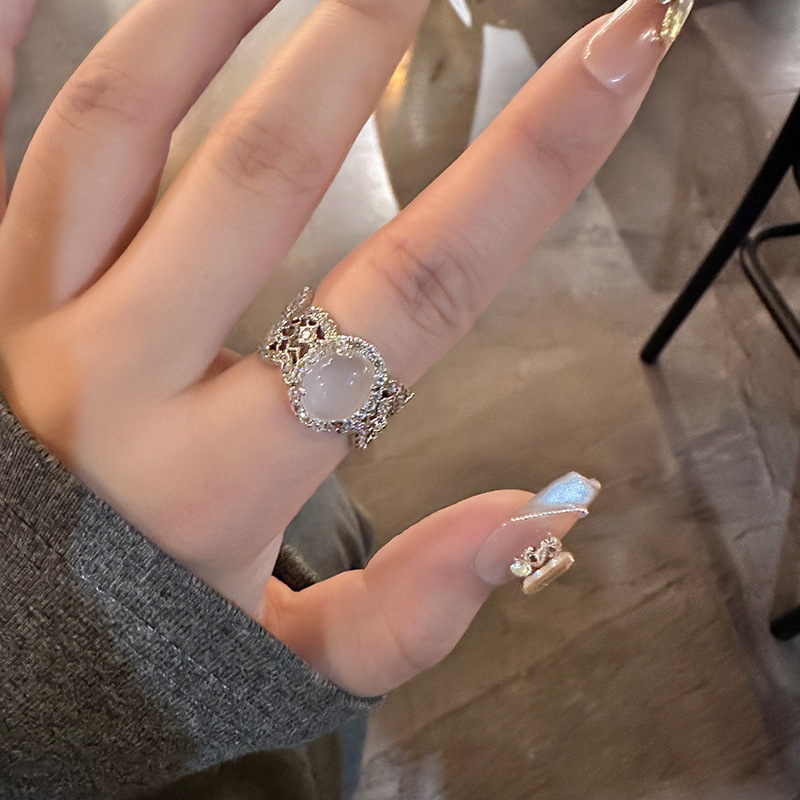 新中式气质锆石戒指轻奢高级复古开口指环新款国风配饰