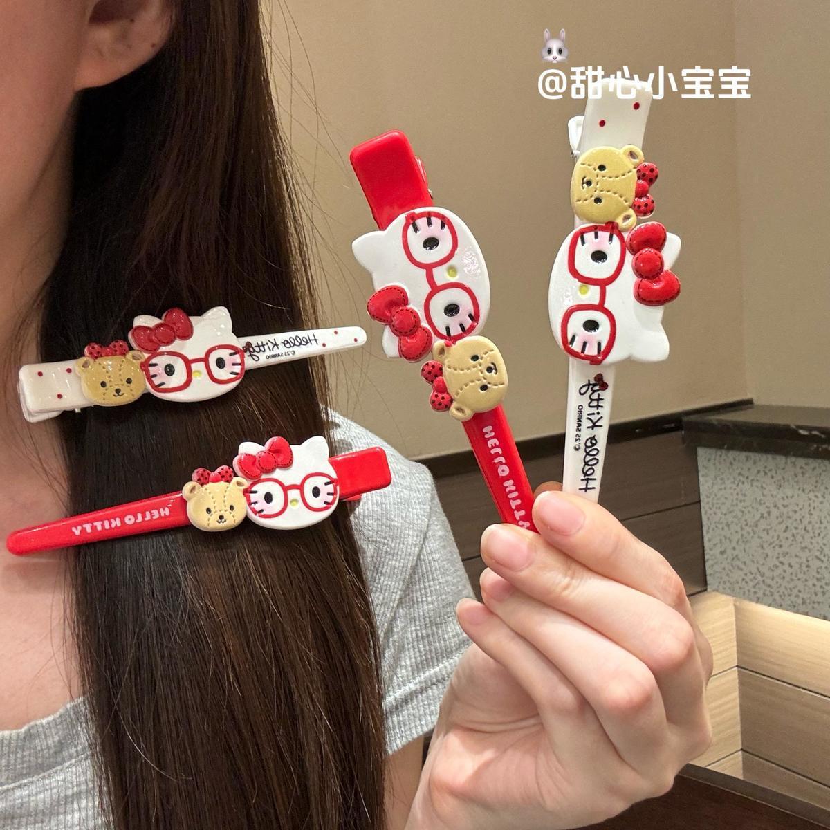日系可爱kitty猫发卡大号长款鸭嘴夹刘海发夹卡通甜美少女侧边夹