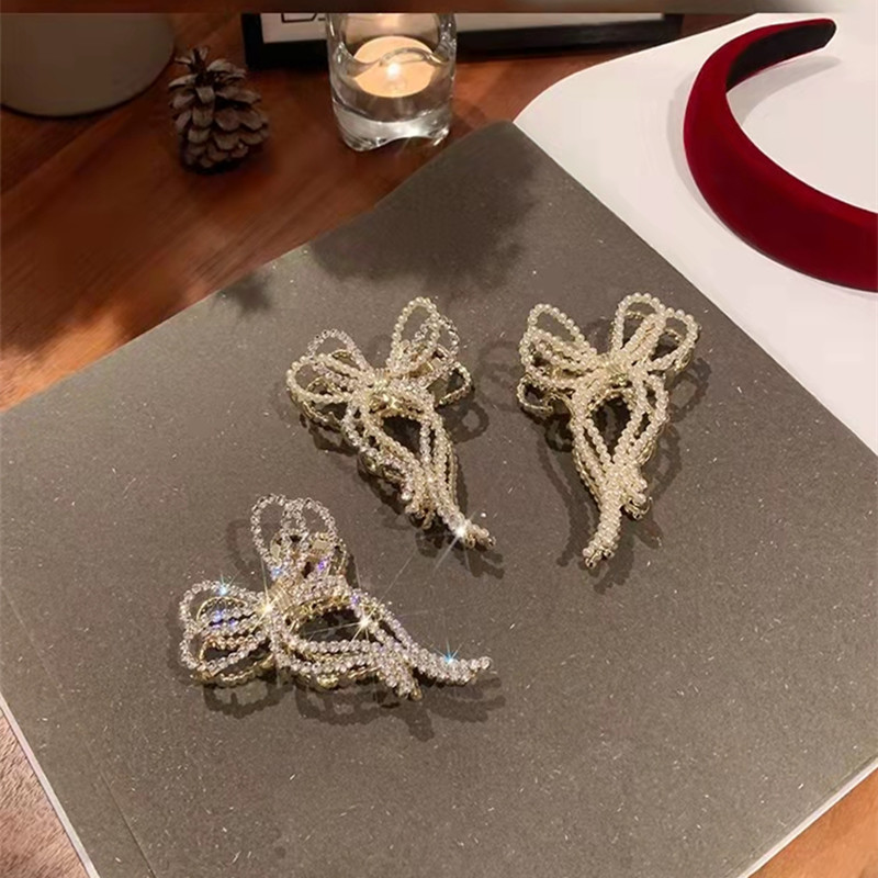 镶钻珍珠蝴蝶结发夹女后脑勺抓夹发饰高级感鲨鱼夹发卡夹子头饰