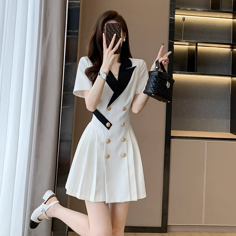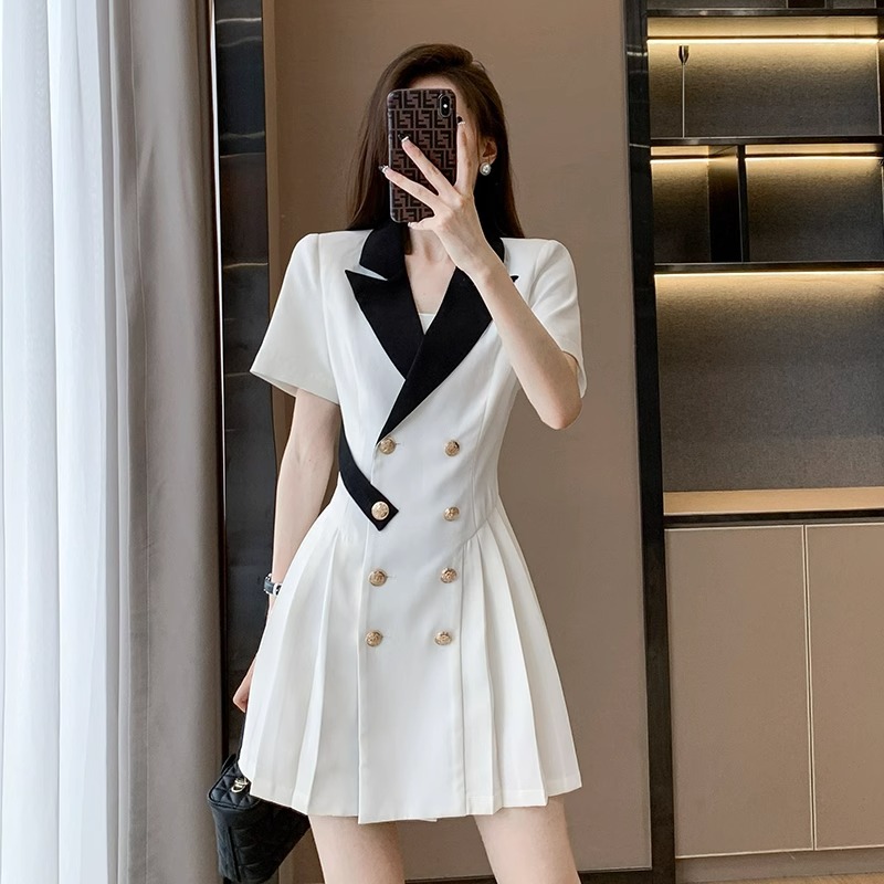 白色气质连衣裙夏高级感夏季新款法式茶歇小个子西装裙小众设计女