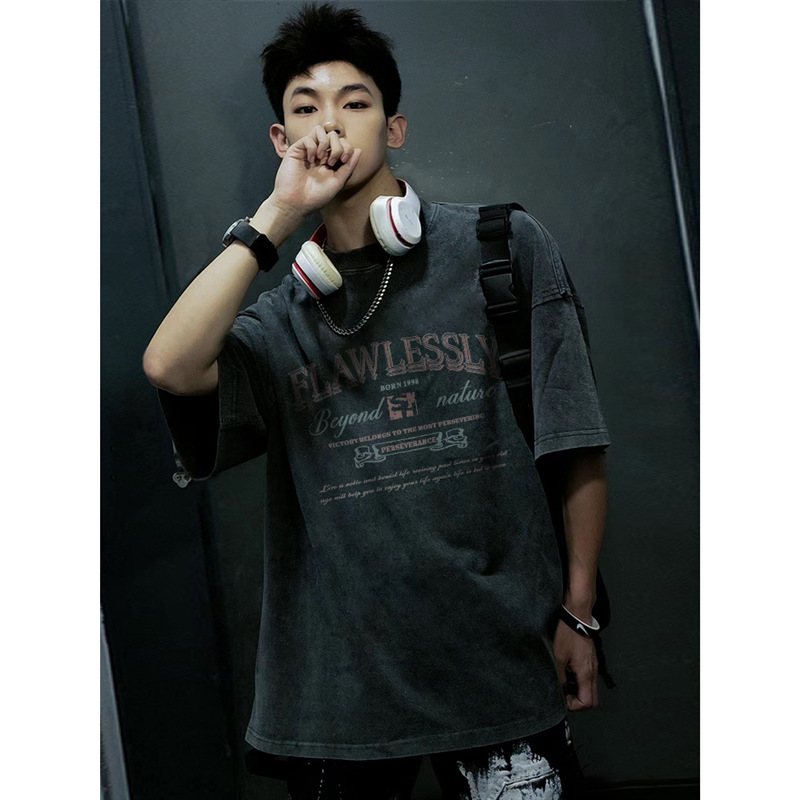 美式潮流做旧短袖T恤男士夏季欧美街头小众潮牌宽松情侣上衣