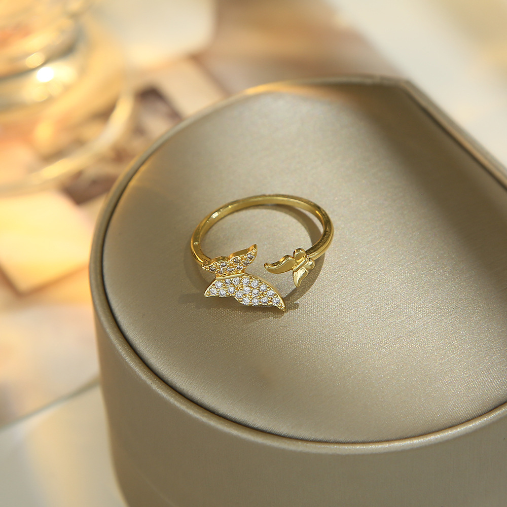 18k镀金ins小蝴蝶开口戒指女小众高级感锆石指环网红气质轻奢尾戒