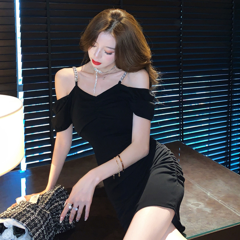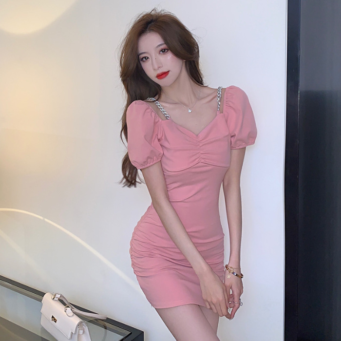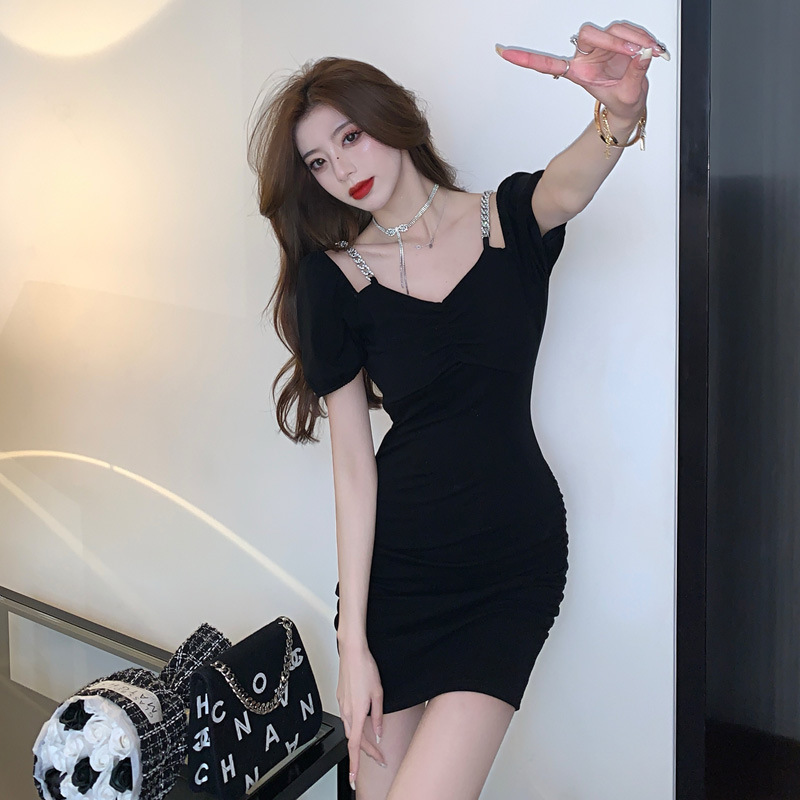 甜辣吊带短袖连衣裙夏季新款法式纯欲高级感气质修身包臀短裙