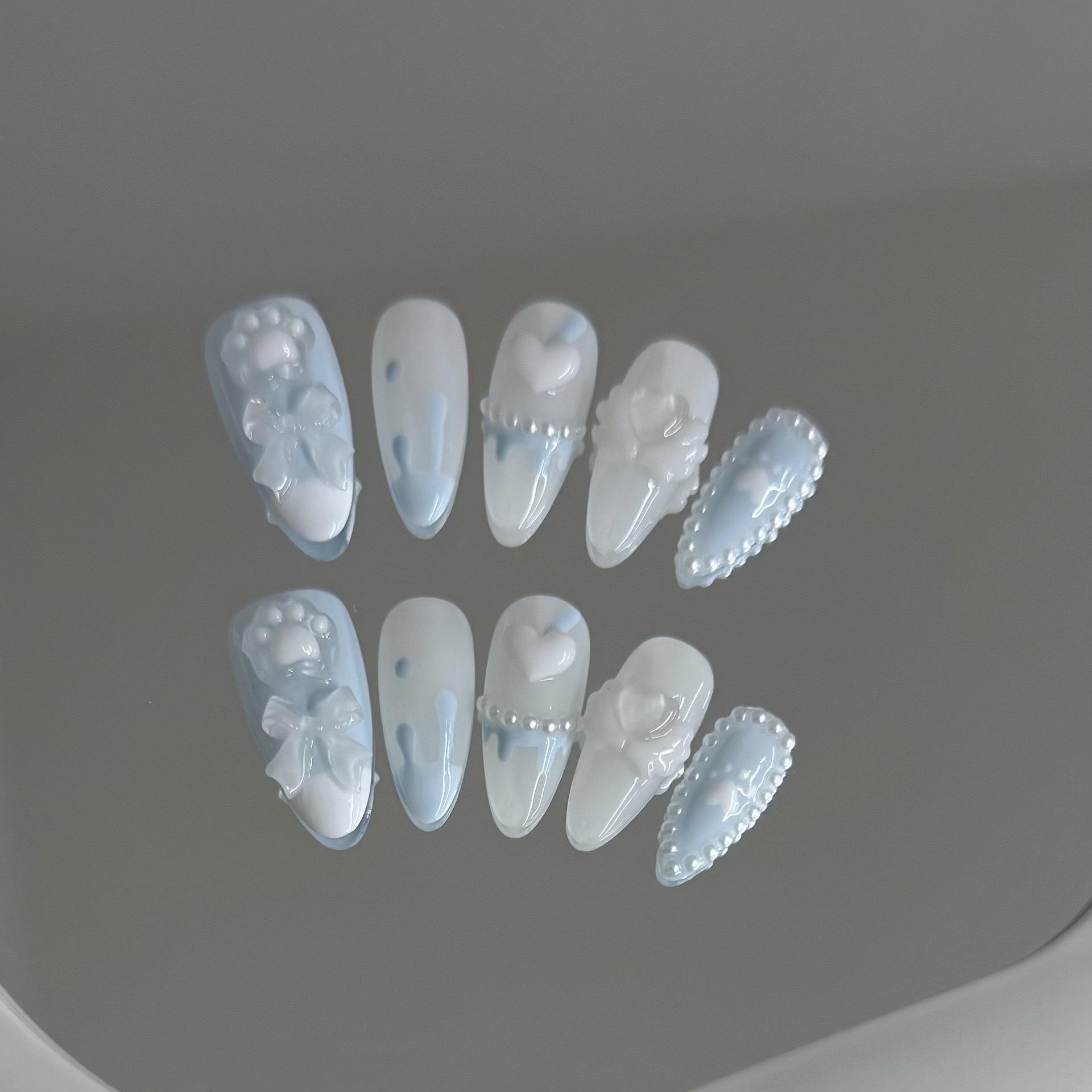 手工穿戴甲可爱卡通立体猫爪蝴蝶结爱心法式可拆卸穿戴甲美甲贴片