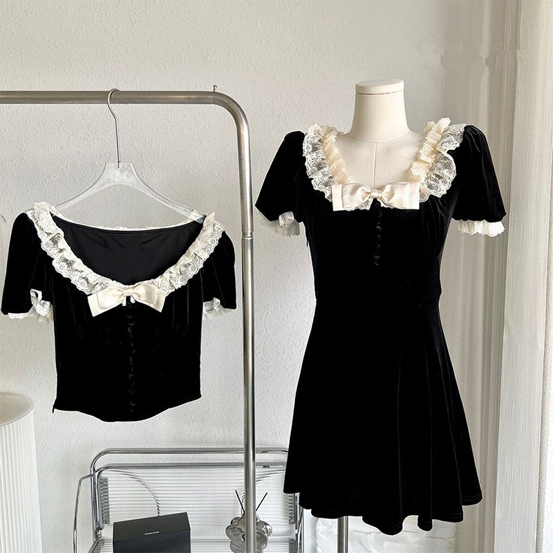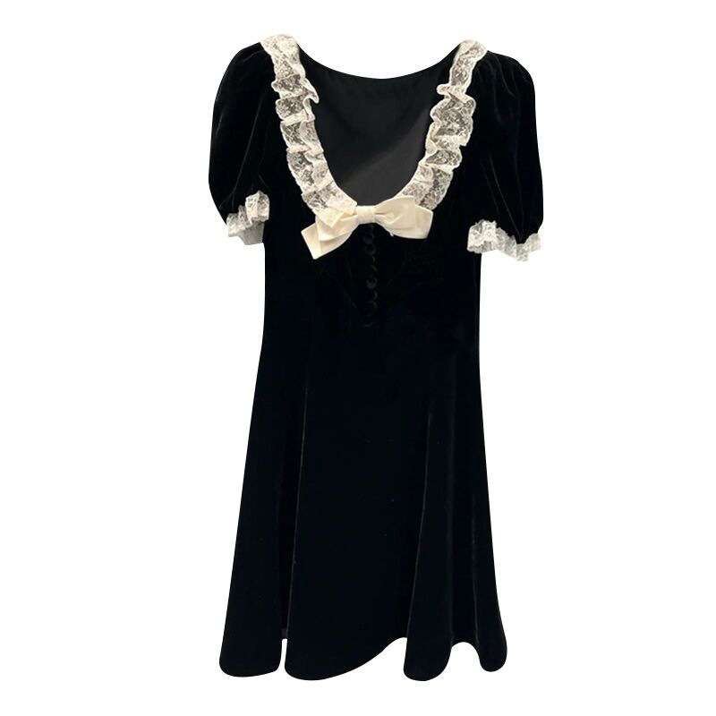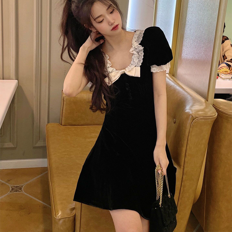 夏季新款蝴蝶结洋气连衣裙高级感修身时尚小黑裙法式赫本风女裙子