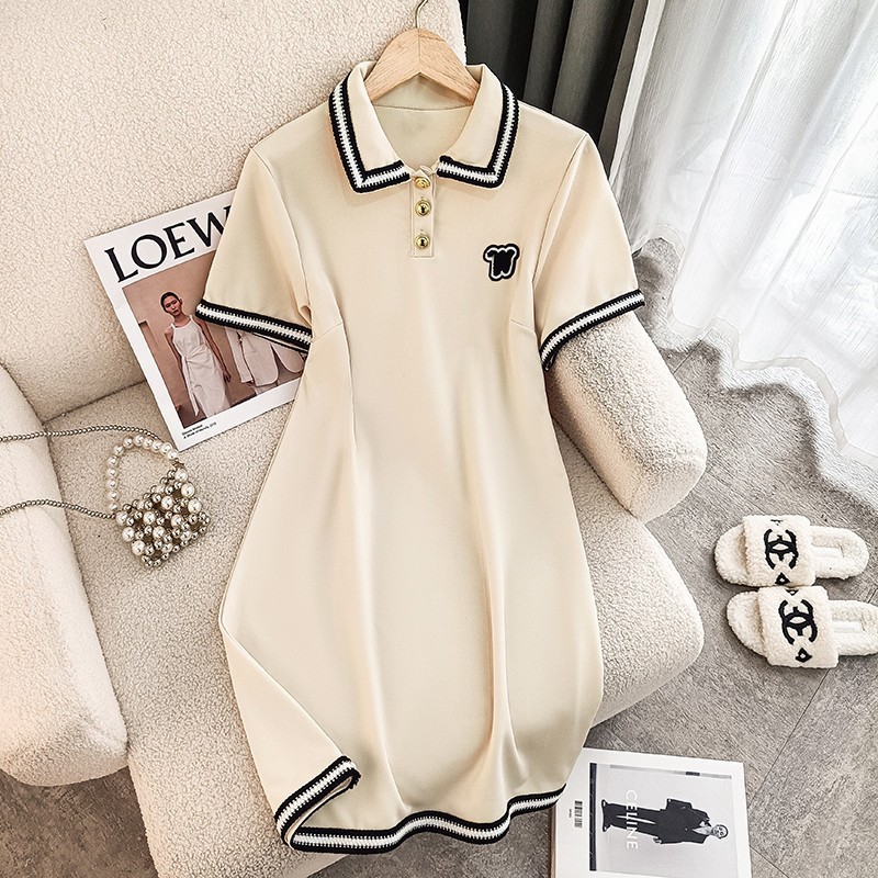 小香风polo领短袖连衣裙女夏季法式气质名媛高级感裙子女