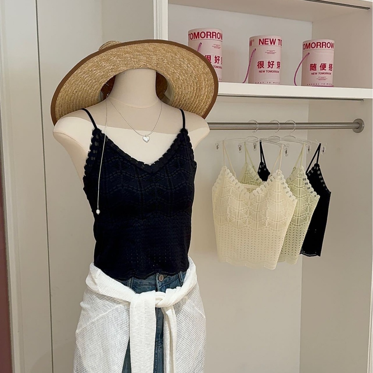 夏季 003# 波西米亚蕾丝吊带背心慵懒度假风修身百搭显瘦带胸垫女