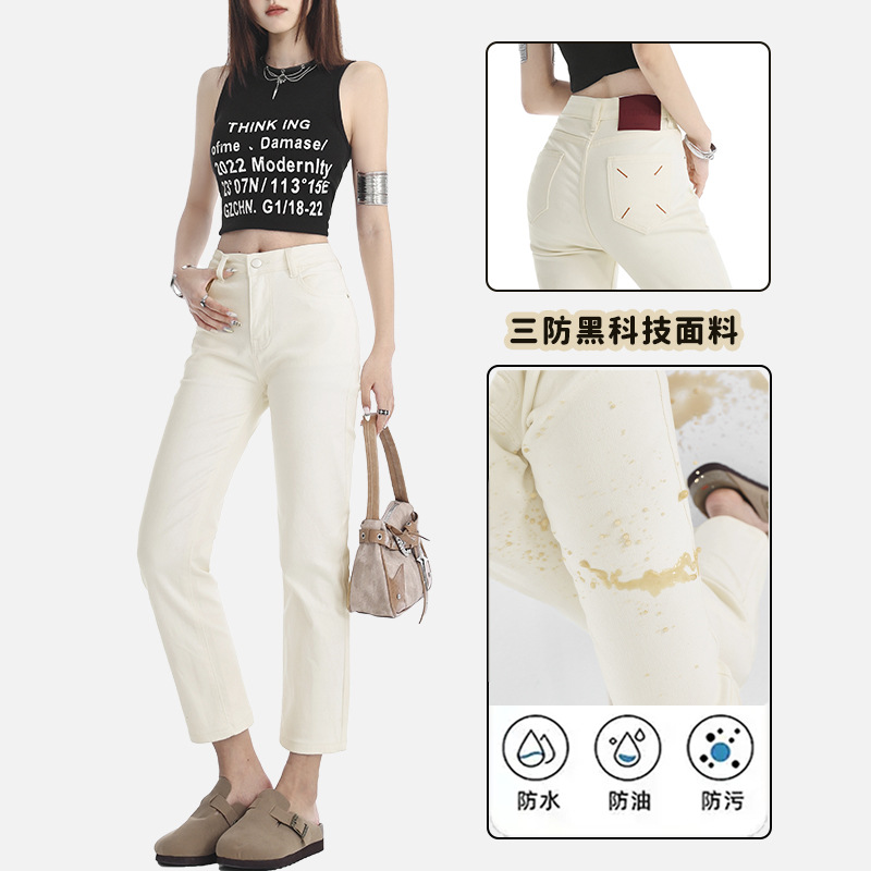 三防面料弹力显瘦直筒裤夏季新款修身薄款烟管牛仔裤女小个子