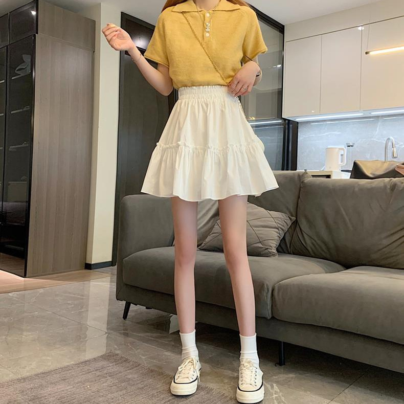 女生黑白色高腰a字短裙百褶蓬蓬裙大码夏季半身裙小个子女装ins潮
