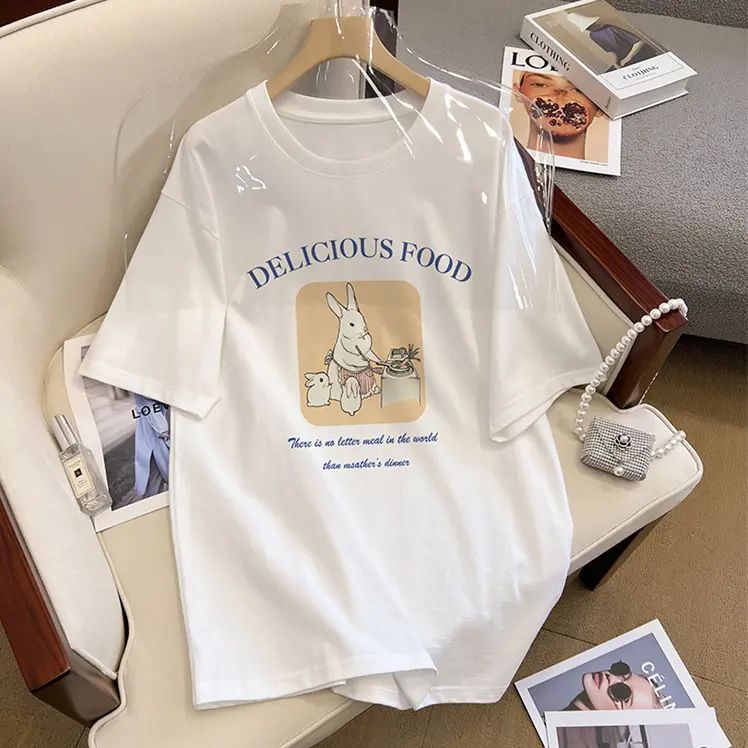 超手感莫代尔韩版小兔甜美宽松百搭卡通印花休闲短袖t恤女